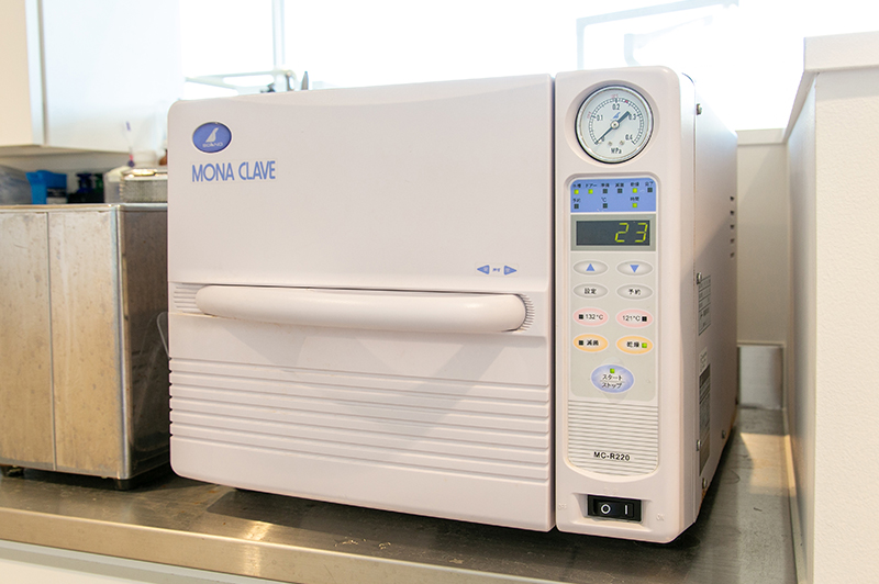 また殺菌作用のある水を生成し、器具の洗浄・消毒に活用しています。治療器具も数を揃え、使い回しのないようにして、医療機関として恥ずかしくない衛生管理を心がけています。清潔かつ過ごしやすい院内でお待ちしています。